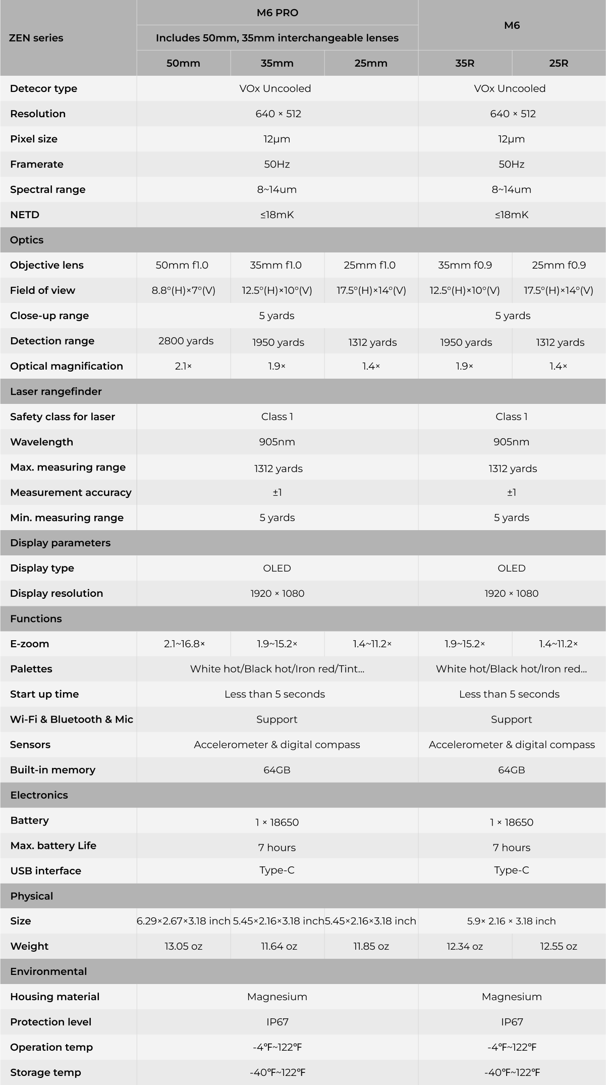 Designed for portability, the ZEN M series is both lightweight and compact, making it easy to carry and use in the field.